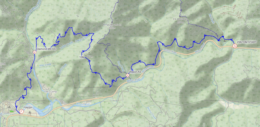 This 11-miler is new to the Elk-Kings lineup and we’re excited to offer a shorter option that doesn’t include ascending and descending Elk and Kings mountains. It is really a perfect race for runners newer to trail racing and who love ferns, those who do NOT want the exposure of climbing and descending the steep and technical mountains, and for people who want to race a really pretty trail that will still kick your butt. This route is a point-to-point on the Wilson River trail, starting with the 25K runners at Elk Creek.