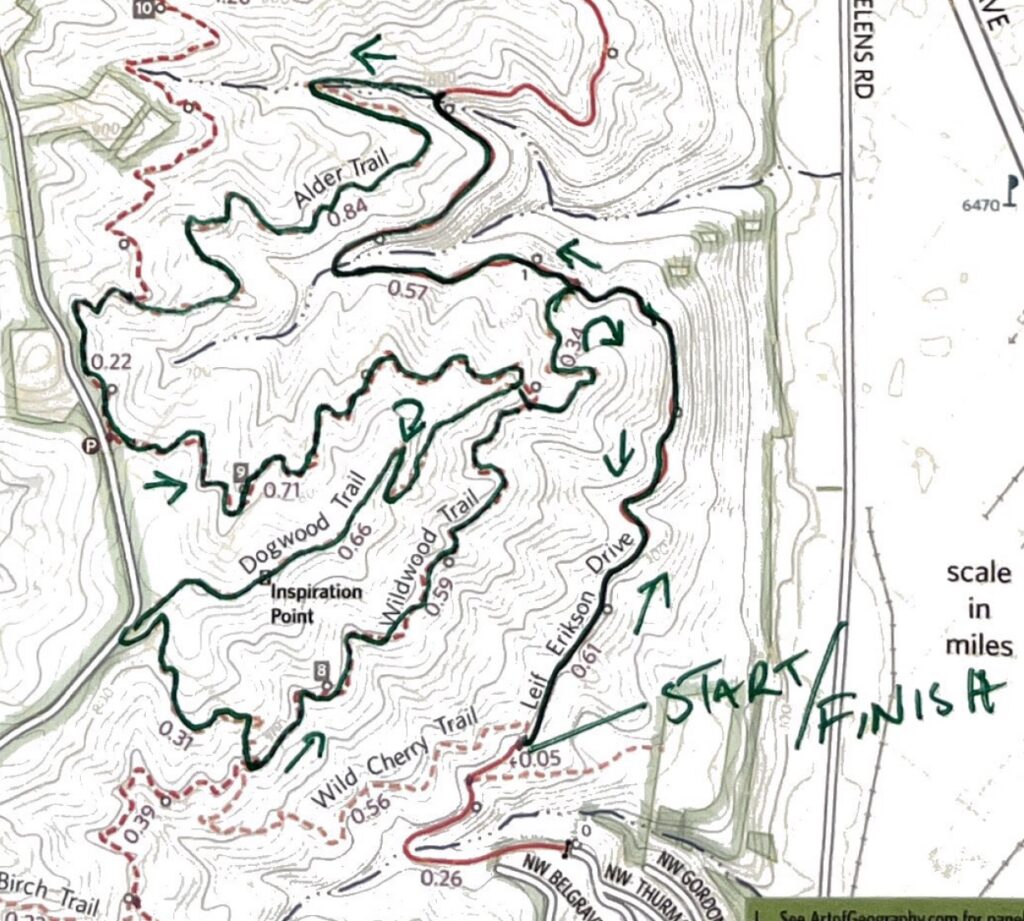 Each race starts and finish at the junction of Leif Erikson and Wild Cherry trail, which is 1/4-mile walk up from the gate at the base of Leif Erikson and NW Thurman.